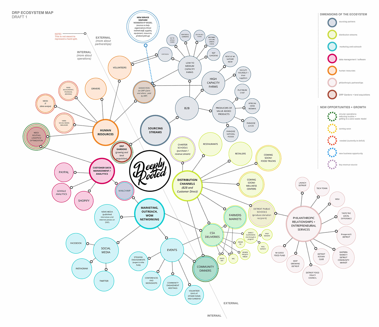 Dazmonique saw that creating a data map would be an essential activity in understanding the sustainable, manageable growth of her business and her place in the Detroit food justice ecosystem. She explained, “The purpose of the generative data mapping project is to have a more strategically regenerative direction to our operations; seeing who we are impacting and how and if the services we are providing is enough and correct for our target audience, and how we can make our relationship with both community members and community partners run smoothly.”
